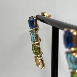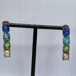 Oscar de la Renta  Opulent Drop Earrings. More is More take on Glamor. Set with Ombre' Blue to Green Tone Glass Crystals, This pair is sure to catch the light from every angle.