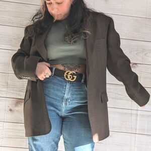 Oscar de la Renta Oversized Suit Blazer in Lambswool & Cashmere in Plaid Sz 16