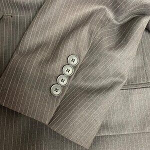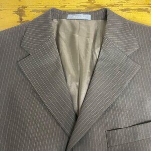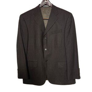 Oscar de la Renta Perfect Press 100% Wool Pinstripe 3 Button Blazer Brown Sz 40S