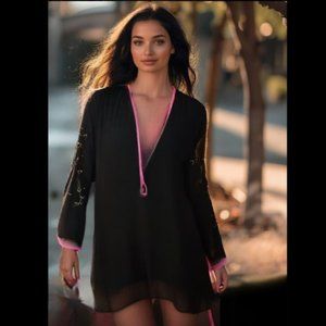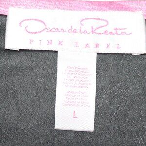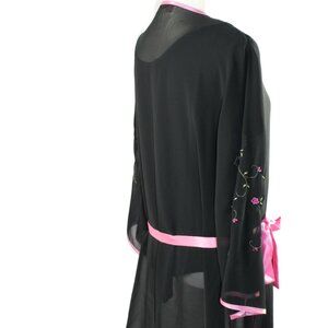 Oscar de la Renta Pink Label Black Sheer Pink Floral Accent Kimono Robe,…