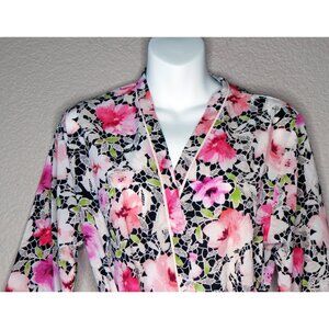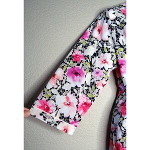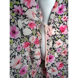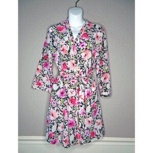 Oscar de la Renta Pink Label Floral Kimono Short Robe with Pockets Size M