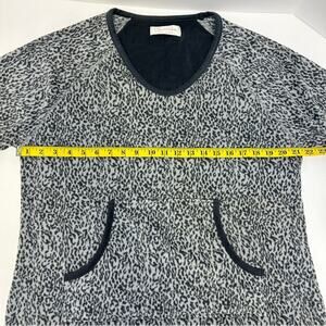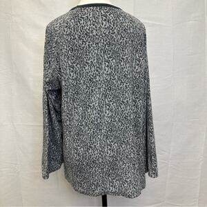 Elevate your loungewear collection with this chic Oscar de la Renta Pink Label pullover top. This size L fleece top features a stylish leopard print pattern in shades of grey, adding a touch of sophistication to your casual wardrobe. Crafted from 100% polyester, it is incredibly soft, cozy, and perfect for keeping warm during cooler months.