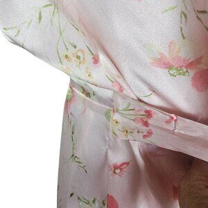 Oscar de la Renta Pink Label Peignoir Set S/M Soft Pink Floral Rosette Detail