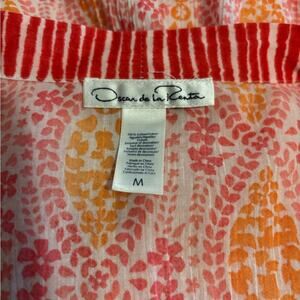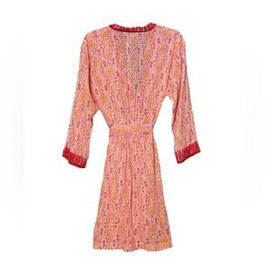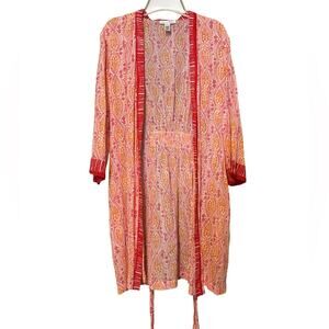 Oscar de la Renta Pink Red Orange Floral 100 % Cotton Belted Robe Size M