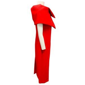 Oscar de la Renta Red 2025 Foldover Neck Bonded Wool Tailoring Midi Dress