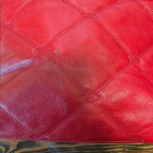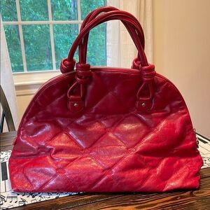 Oscar de la Renta Red Signature Quilted Leather Knotted Handle Shoulder Bag