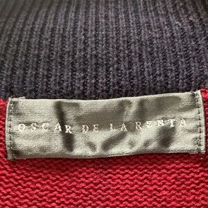Experience the luxurious comfort of this Oscar de la Renta red zip-up sweater, crafted from a cozy material for warmth. Featuring a standing collar and a sleek black zipper, this sweater combines elegance with a relaxed fit, making it a versatile addition to any wardrobe.