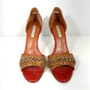 Oscar de la Renta Red and Tan Croc Heels