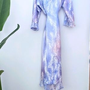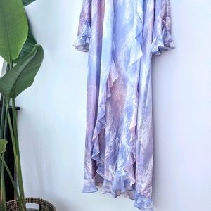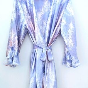✨ Full length Satin Robe. Such a dreamy piece to own. Super flowy and light fabric. Has ruffles, pockets and a tie at the waist. Full Length Satin Robe. White, rose and lavender/lilac tones. Subtle Cheetah print and feathers design. Brand Oscar de la Renta. Labeled size XL but runs a lot smaller.✨