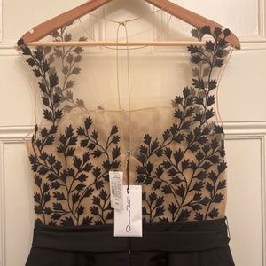 Oscar de la Renta Sheer Leaf Dress Nude/Black