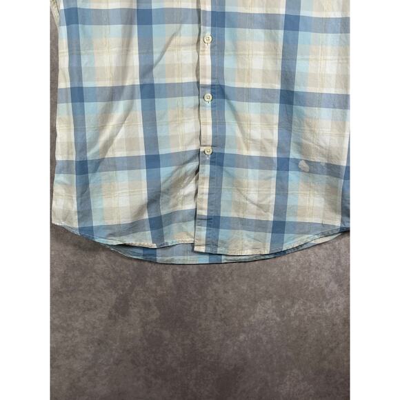 Oscar de la Renta Shirt Mens Medium Blue Yellow Plaid Tailored Fit Button Up