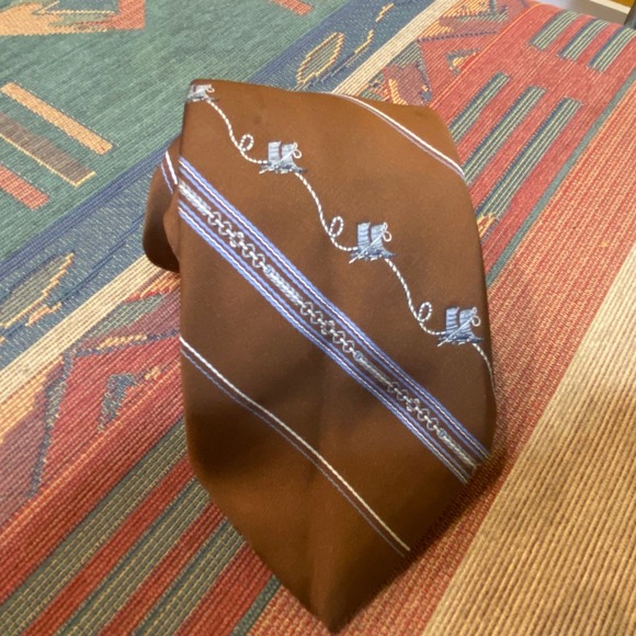 Keywords: Oscar de la Renta tie, Men's necktie, Nautical tie, Sailboat pattern, Striped tie, Brown silk tie, Designer men's tie, Formal wear accessory, Wedding tie, Business tie, Luxury necktie, Vintage fashion, Mens fashion, Accessory gift