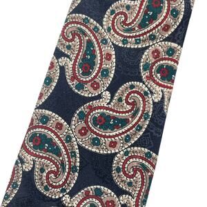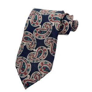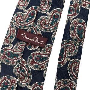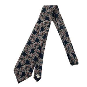 Oscar de la Renta Silk Tie Paisley Printed Navy Blue 57"