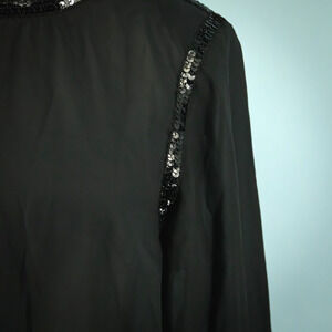 Oscar de la Renta Size 12 Black Sequin Detail Open Cut Out Back Long Sleeve Top