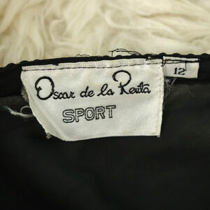Oscar de la Renta Size 12 Black Sequin Detail Open Cut Out Back Crew Neck Long Sleeve Semi-Sheer Top Blouse Shirt Vintage VTG