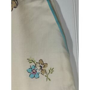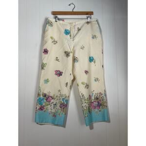 Oscar de la Renta Size 14 Wide Leg Crop Pants Cream Turquoise Floral Print Lined