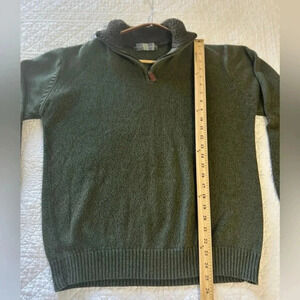 Men’s 3/4 zip, dark green, Oscar de la Renta sweater. Measurements in pictures. Tag has been removed. My best guess is that this is a cotton blend. From a pet and smoke free home.