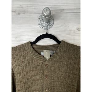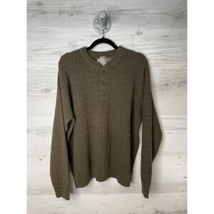 Oscar de la Renta Sweater Mens Large Olive Brown Henley Waffle Knit Long Sleeve