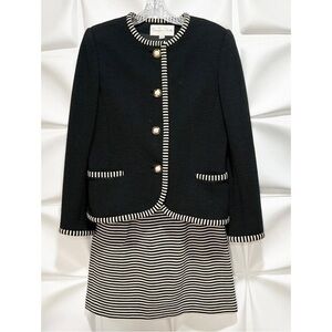 Oscar de la Renta Sz 10 Black Striped Jacket Blazer Skirt Suit Set Womens RARE