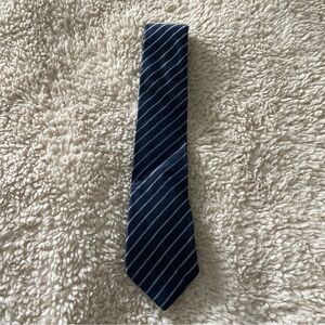 100% Silk navy blue and silver Striped designer tie by Oscar de la Renta.