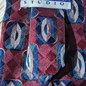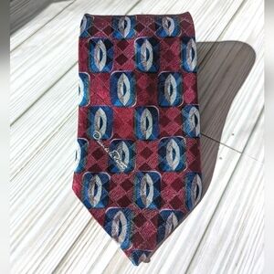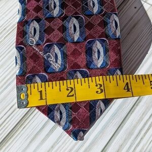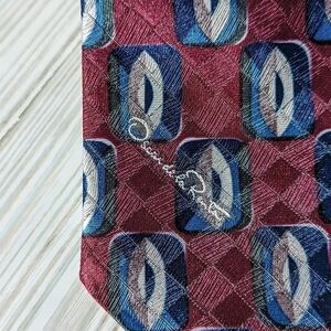 Oscar de la Renta Vintage Geometric Pattern Print Necktie in Retro Red and Blue