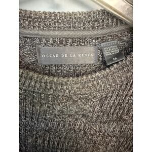 Chic Oscar de la Renta sweater in a versatile taupe/gray tone with a subtle textured knit design. Crewneck with ribbed hem and cuffs for a timeless look. This neutral shade makes it perfect for both casual and elevated outfits.