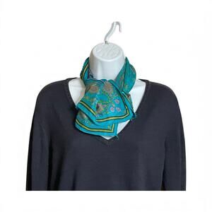 Oscar de la Renta Silk Scarf Square Paisley Turquoise Teal Purple Vintage Designer