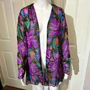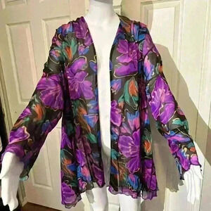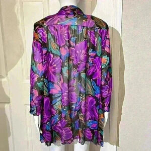 Oscar de la Renta Womens Medium Swimwear Swim Cover Up Sheer Psychedelic Vintage