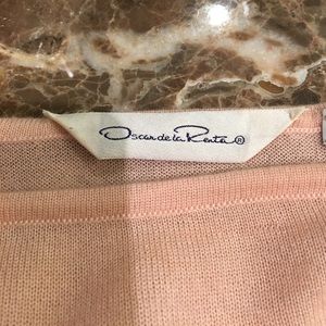 Oscar de la Renta outfit of perfection. Ostrich feather and sequin skirt. Skirt has hook and eye/ side zipper. Tiny stain that hasn't been dry cleaned. It most definitely will be able to come out (on back). Great condition other than that!! 3/4 length sleeves on sweater. Thin cashmere. Versatile silk tassel belt. Can be worn around neck or waist. Stunning outfit. Perfect for Easter and spring!!