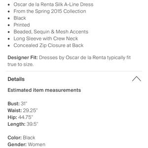 Designer Fit: Dresses by Oscar de la Renta typically fit true to size.