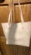 Oscar de la Renta neoprene blush pink tote as a scuff on the side that’s on the back interior fairly clean I will wipe it down more. There is a spot on the bottom as noted in the photos. The corners are all good. The handles are good pretty amazing condition. She’s a big girl measuring 17 x 13 x 6 handle drop of 11.