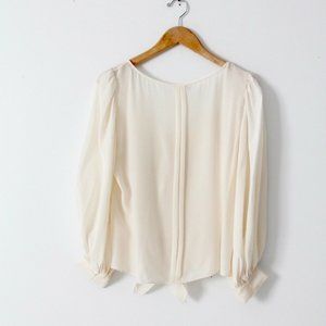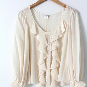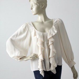 Oscar de la Renta creme silk peasant blouse. Full sleeves with cuff just above wrist. Marked size 8. 100% silk Made is USA. from Spring 2006 Collection. In good pre-owned condition.