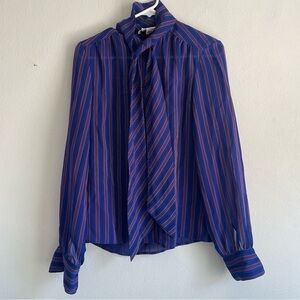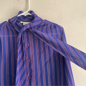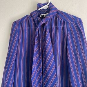 Oscar de la Renta sport blue striped tie front button down blouse long sleeve