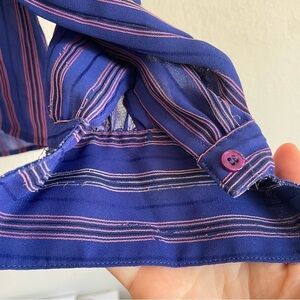 Oscar de la Renta sport blue striped tie front button down blouse long sleeve. Incredible piece from high end designer Oscar de la Renta’s sports line.