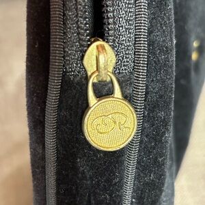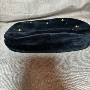 Oscar de la Renta Cosmetic Bag Black Velour with Gold Fleur de Lis Emblems