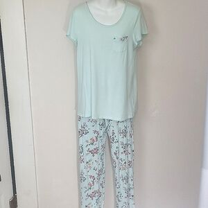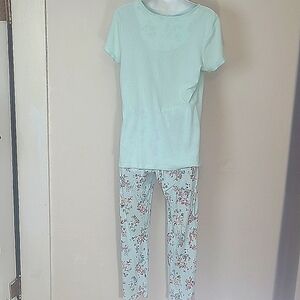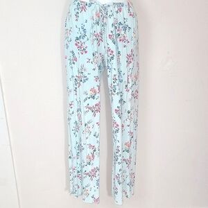 Oscar de la renta matching set pajamas light blue floral print drawstring pants