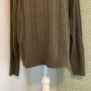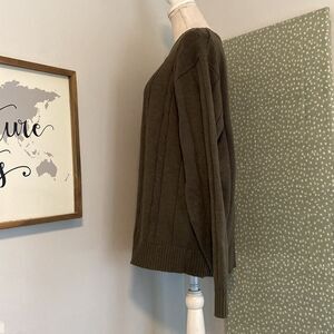 Oscar de la Renta Olive Green Long Sleeve Cable Knit Sweater Size Large
