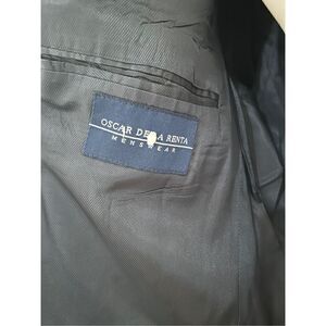 Oscar de la Renta Mens Pinstripe Button Down Blazer Dark Gray Size 44 L W38. Right sleeve has flaw. Please see photo.