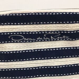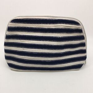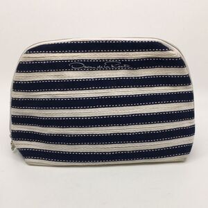 Oscar de la Renta navy blue and cream striped cosmetics makeup bag case. In excellent used condition. Such a great size! Measurements in photos. Minor marks to bottom appears to be from storage, interior looks and feels like new.