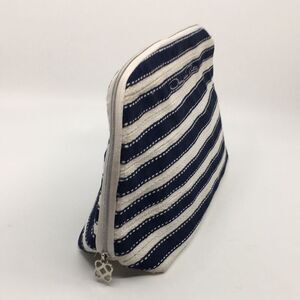 Oscar de la Renta Navy Blue and Cream Striped Padded Makeup / Cosmetic Bag