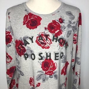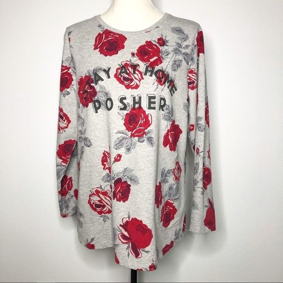 Like new! Worn and washed once. One of Oscilatey’s genuine one of a kind pieces! Stay At Home Posher quality screen printed on red rose print pocket pullover sweatshirt jumper tunic. Oversized lounge fit. Heather grey. 21” chest, 27” length in front, 29” in back, 25” sleeves from collar. Bundle and save, offers welcome!