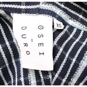 Osei Duro Navy Blue Theca Striped Grid Open Front Cardigan Jacket Coat XS