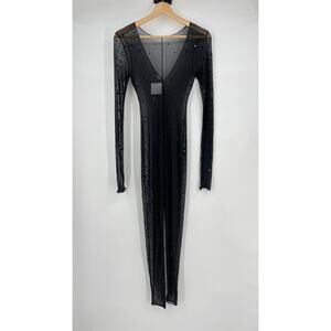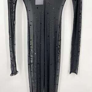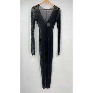 Oseree | NWT Crystal Jumpsuit in Black Gem Mesh Sheer Catsuit Bling S