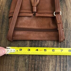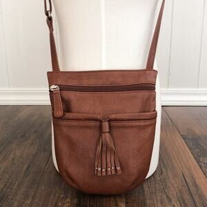 Osgoode Marley Crossbody Bag Leather Fringe Detail Exterior Zipper Pockets Brown
