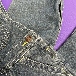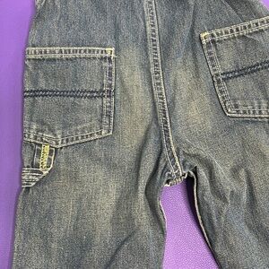 Osh Kosh B’Gosh jean overalls with snaps along legs many pockets
