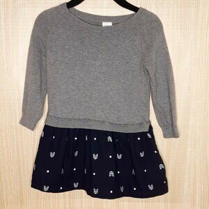 Osh Kosh B’gosh toddler girl’s pug dress size 18 months. Has a sweater top with a cotton blend skirt with dog print on bottom. Great condition. Measurements are: 12 ½” sleeve (measured from collar), 17 ½” from shoulder to hem, and 10” from armpit to armpit.
