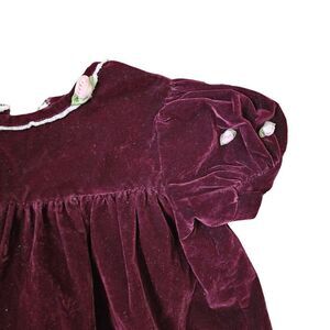 Osh Kosh Collection Velvet Formal Toddler Dress Roses Girls Size 4T Maroon