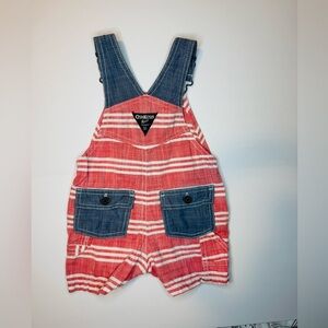 OshKosh B'Gosh Baby Shortalls 12 Months Boy Girl Red White Blue Shorts Overalls