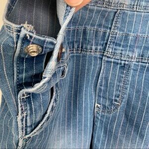 OshKosh B’Gosh Denim Overalls With Pink Green Purple Stripes Size 3T