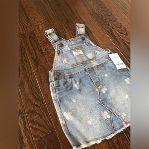 OshKosh B'Gosh Girls 12M Floral Vintage Wash Denim Skirtall/Overalls Dress - NWT